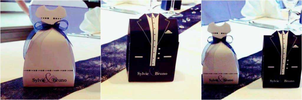 Contenant dragées mariage : robe et costume de mariés