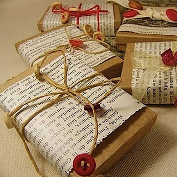 Vous connaissiez l’usage du papier journal en cas de panne de papier cadeau ? Eh bien, voilà une idée qui y ressemble ! Si vous avez de vieux livres dont vous ne savez plus quoi faire, vous pouvez utiliser leurs pages pour envelopper votre cadeau de noel. Il suffit ensuite d’ajouter une petite étiquette ou un nœud fait avec une ficelle et voilà, le tour est joué !