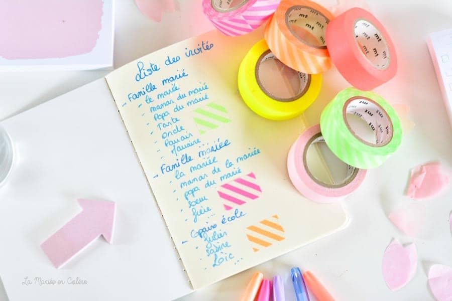 • Sur une feuille : regrouper chaque groupe d’invités avec une couleur propre.