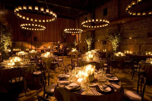 Le bois apportera de la chaleur et de la convivialité : exactement ce que l’on cherche comme ambiance dans une déco automne. Si vous trouvez que cette matière assombrit un peu trop votre salle de réception, vous pouvez privilégier des textiles blancs pour les nappes par exemples (et ajouter de la couleur grâce à d’autres éléments comme la déco, les serviettes, les dos de chaises…). Vous pouvez aussi jouer avec de la lumière grâce à des bougies (vraies ou à LED) ou des guirlandes. Non seulement elle permettra d’éclaircir la pièce, mais elle donnera aussi encore plus de chaleur à votre lieu.