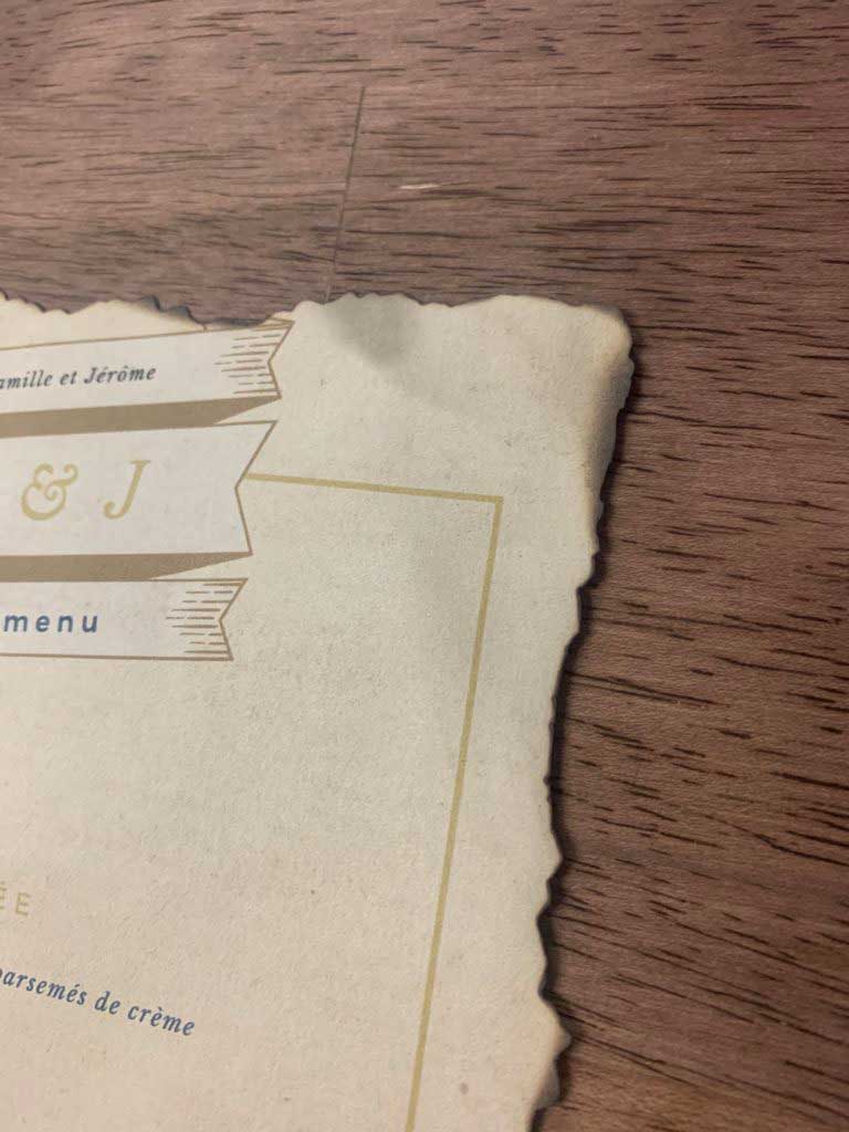 Attention les doigts pour celle-ci ! Prenez le briquet et brûlez la papeterie selon vos goûts et vos envies pour ajouter encore un aspect vieilli.