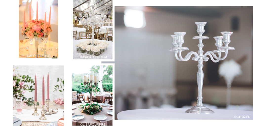 De toutes les couleurs, toutes les formes, toutes les tailles… Le chandelier, c’est souvent un incontournable des décorations mariages. Ornés de bougies, de fleurs, de strass, de rubans… Il en existe tellement qu’on est sûrs que vous pourrez trouver votre bonheur et utiliser celui qui ira le mieux dans votre déco !