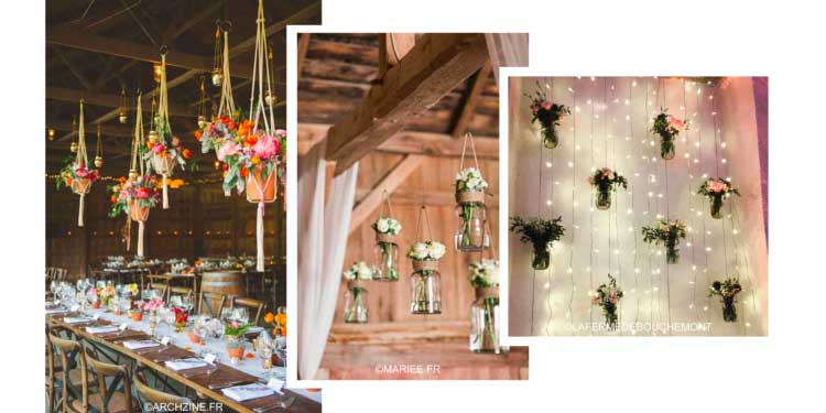 Des fleurs, du feuillage, de la lumière… Tout peut se retrouver dans les airs (à condition de tout bien accrocher !! Ce serait quand même bête d’assommer tata Janine…). Trouvez l’idée qui vous plaît et qui correspond au style de votre mariage !