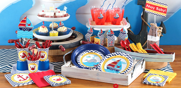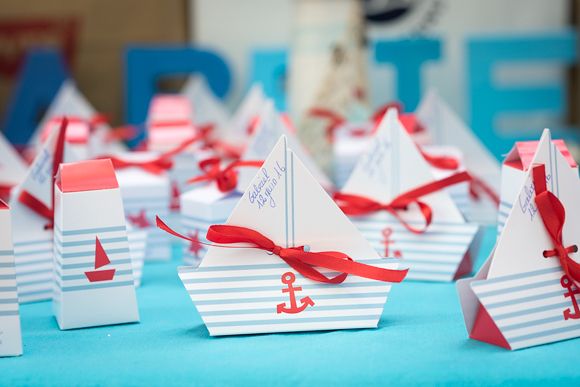 Voilà donc un autre thème assez classique, mais dont on ne se lasse pas… Le thème marin revient très souvent pour les baptêmes des petits garçons. Là encore, c’est un bon moyen d’utiliser la couleur bleu, mais on peut aussi y ajouter une touche de couleur plus vive, comme le rouge qui se marie très bien avec le bleu.