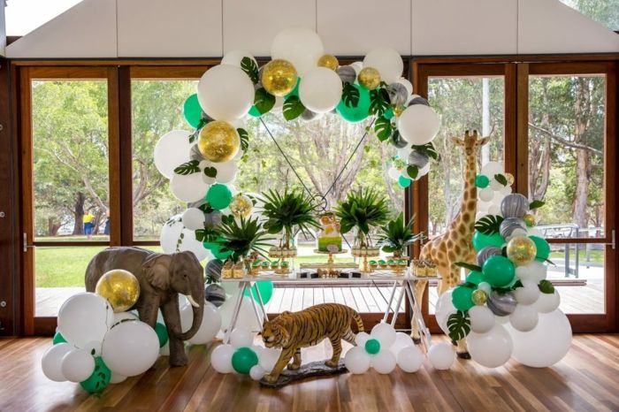 Pour la décoration, vous pouvez aussi profiter d’ajouter quelques objets indispensables à tout bon aventurier… Un petit chapeau, des jumelles, un appareil photo… Voilà de quoi recréer un safari qui ravira vos invités, petits et grands !
