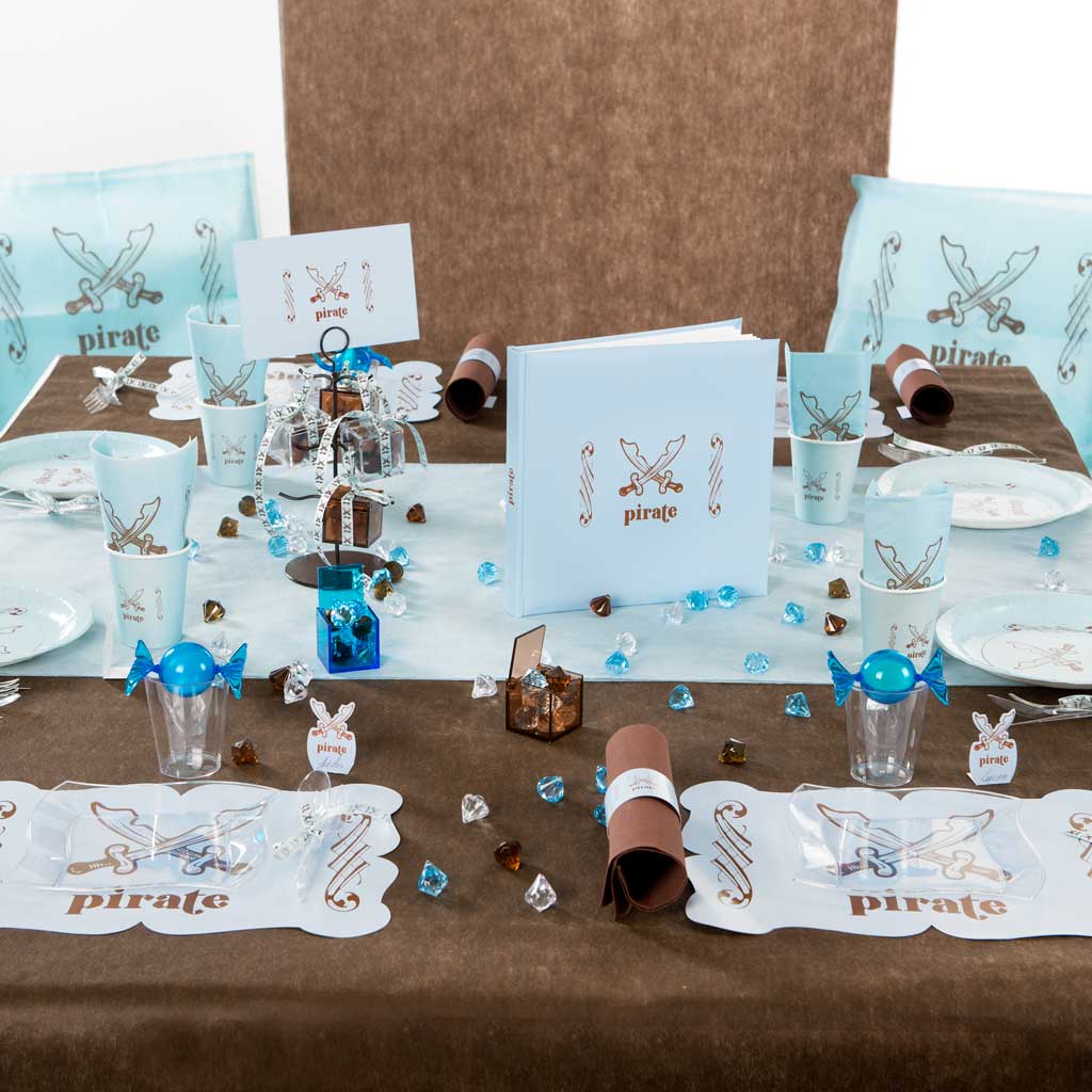 Votre petit garçon est intrépide et n’a peur de rien ? Alors, aucun doute : le thème pirate est fait pour lui ! Carte au trésor, petits diamants décoratifs sur la table, mini bouteille en verre pour les marque-places… Il y a des tas d’idées à exploiter pour un joli thème pirate !