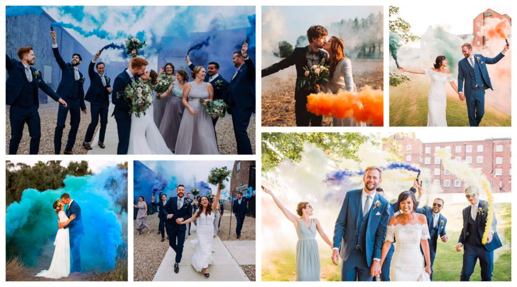 En parlant de photos voilà des accessoires qui ne feront que les sublimer. Habituellement les fumigènes colorés ont tendances à être présents dans les festivals, et bien figurez-vous que désormais ils font partie des tendances mariage. Nous, on adore cette touche de fun et de couleurs qu’ils apportent sur les photos. En plus, vous pourrez choisir les couleurs en fonction de votre thème. Vous aurez des photos superbes et originales !