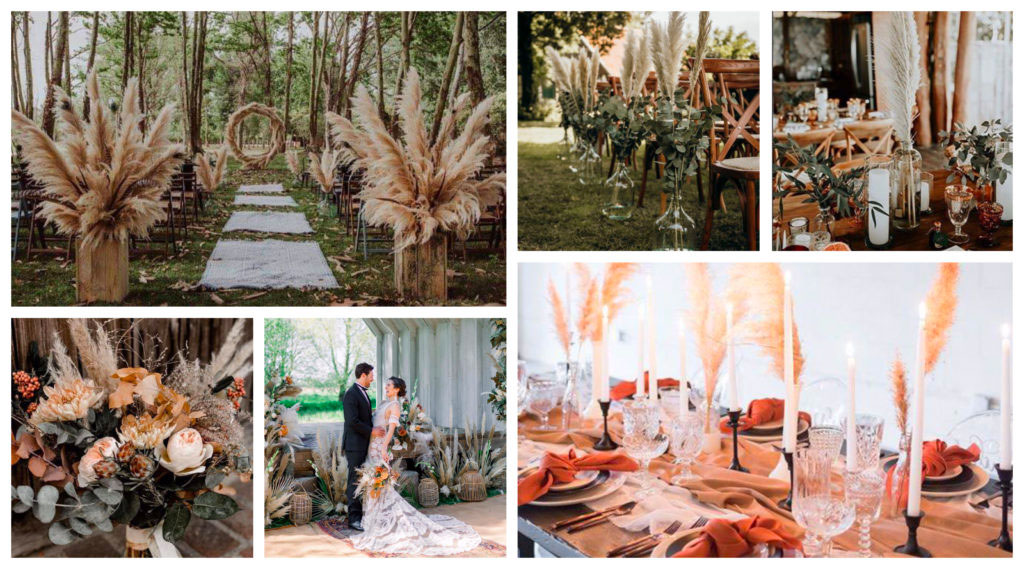 Alors dit comme ça, ça ne vous dit peut être rien et pourtant vous les avez sans aucun doute déjà croisées, et vous les utilisez peut-être même dans votre décoration d’intérieur. Les herbes de la pampa sont devenues très tendance, et sont un élément de décoration à part entière. Pour un thème champêtre chic ou bohème, elles seront indispensables et vous pourrez vous en servir pour plusieurs endroits de votre décoration. Vous pourrez en faire des bouquets ou bien juste parsemer quelques brins par-çi, par-là. Et pourquoi pas même en faire une arche pour votre cérémonie ! 🙂