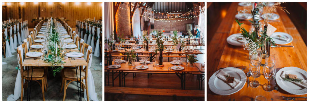 Pour sublimer vos tables banquet, le chemin de table en tissu sera alors votre allié. Ainsi vous pourrez décorer vos tables, sans les cacher. Si vous optez pour de jolies tables en bois il serait dommage de les recouvrir avec une nappe. Alors que le chemin de table en tissu ne fera que les mettre en valeur. Pourquoi en tissu ? Parce que c’est la tendance déco de 2O2O, on retrouve le côté nature et champêtre.
