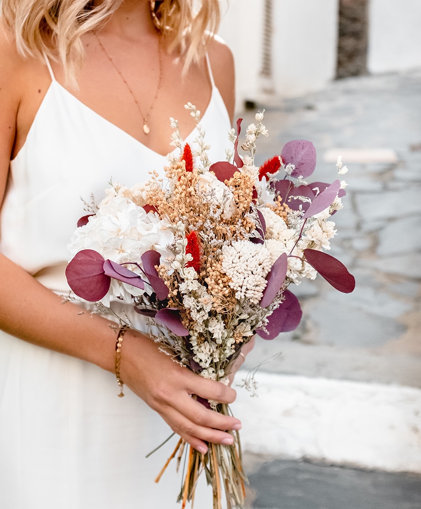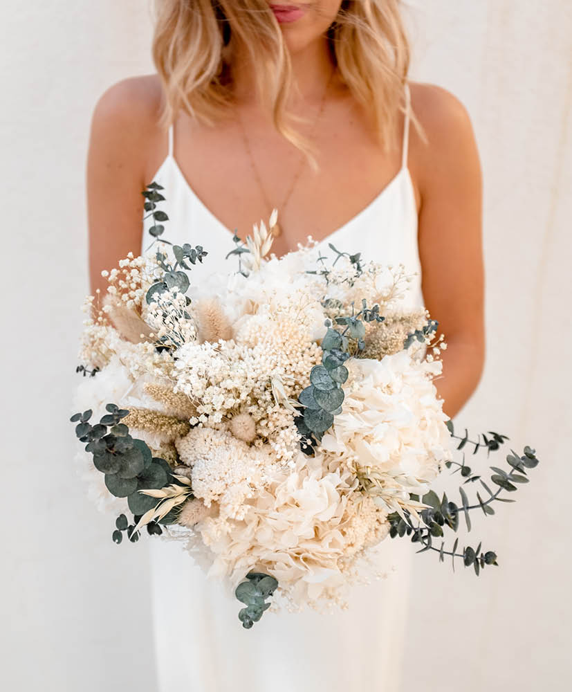 La beauté des fleurs séchées n’est pas la seule chose qu’on apprécie pour les mariages. En fait, elles possèdent de nombreux avantages côté déco ! D’abord, elles sont plus facile à conserver que des fleurs fraîches, ce qui permet d’acheter et de créer ses compositions en avance. On note aussi qu’avec cette alternative déco, plus besoin de réfléchir au calendrier des fleurs : on les trouve toute l’année ! On note aussi qu’elles sont moins sensibles à la chaleur, ce qui permet de les installer même quand il fait très chaud.