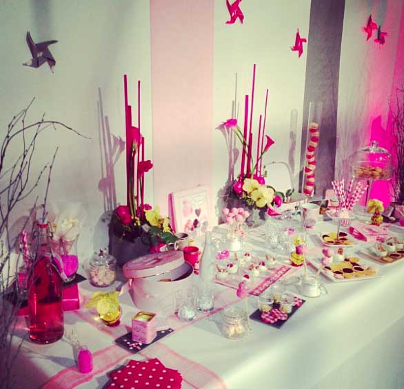 La table est joliment sweet et acidulée. La palette de couleurs n’a pas été choisie au hasard. Il fallait rappeler les tons de l’invitation. Le rose et le jaune, ce qui donne un joli mélange pastel et citronné, accompagné de gaieté et de fantaisie.