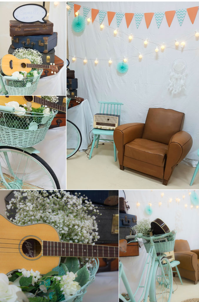 Le coin photobooth,  décoré d’un brin de champêtre et d’une touche de vintage, a permis à l’entourage de Camille de se créer de jolis souvenirs.