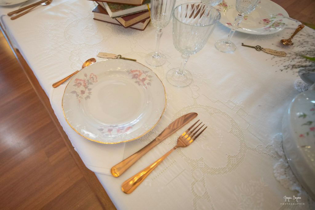 Chaque élément de la table est authentique ! Pour vous inspirer au mieux, j’ai flâné dans les brocantes et les vide-greniers à la recherche des plus beaux éléments. Certains viennent même directement de chez mes grands-parents : les mieux placés pour vous offrir des objets d’antan parfait pour une déco vintage sans faute !