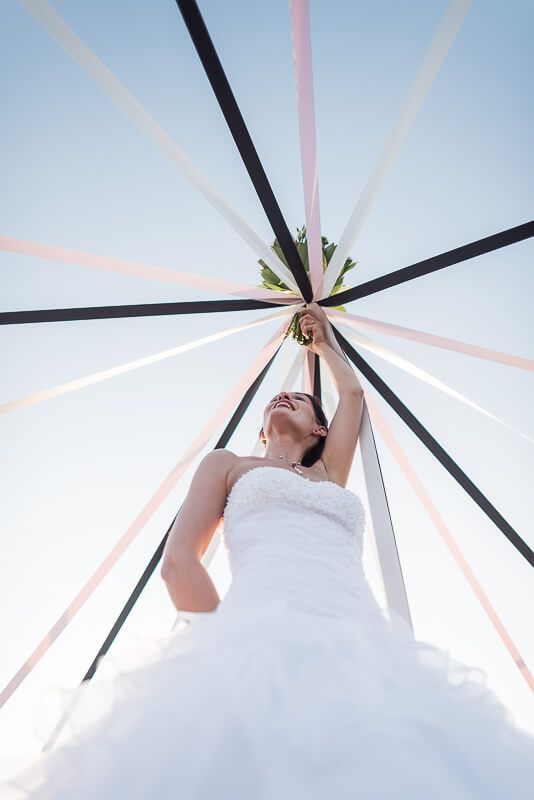 Le truc cool ici, c’est que vous n’êtes pas obligée de réaliser ce lancer de bouquet avec le vôtre, il suffit d’en prévoir un deuxième auprès de votre fleuriste. L’autre avantage si vous procédez de cette manière, c’est que vous pouvez préparer tout ça à l’avance !