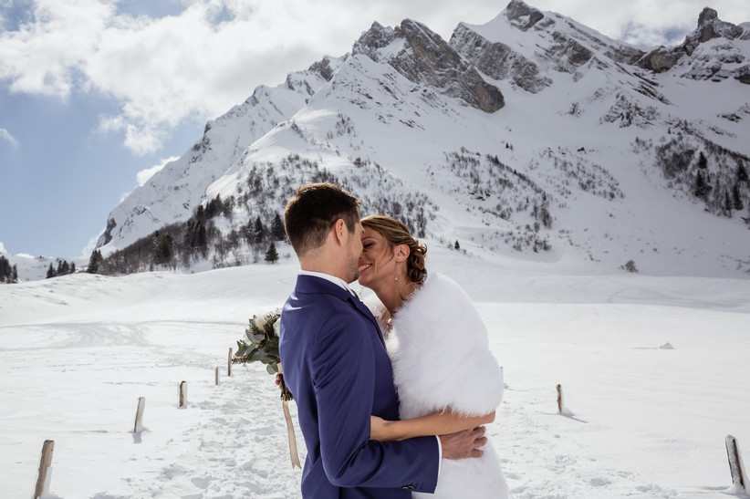 Combien de mariés peuvent se vanter d’avoir des photos de mariage dans un décor enneigé ? Très peu ! Un mariage hiver vous offre bien plus de chance de profiter d’un décor de montagne, différent des photos traditionnelles dans un parc ou à la plage. Encore faut-il qu’il neige, d’accord… Mais même si la météo ne vous offre pas la magie de quelques flocons, vous pourrez profiter de la lumière douce de cette saison.