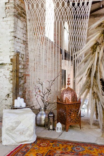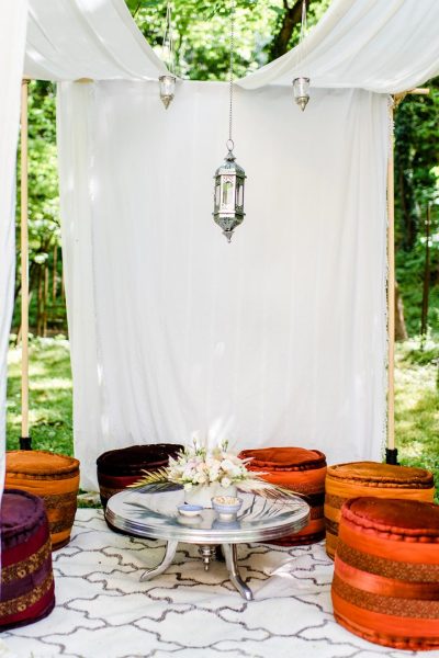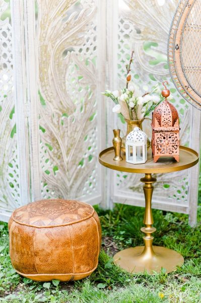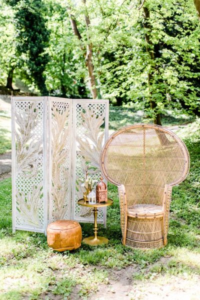 Un vrai rêve de 1001 nuits : tissus colorés, détails orientaux et une touche de style bohème. Alors que le thème bohème est de plus en plus populaire ces dernières années. Complété par des objets orientaux il est totalement revisité. Une idée qui pourrait vous inspirer pour votre mariage oriental et votre coin photobooth. Vous pourrez alors utiliser des fauteuils Emmanuel pour le côté bohème puis des objets déco typiques de l’Orient. Ou encore des trônes pour une décoration totalement orientale.