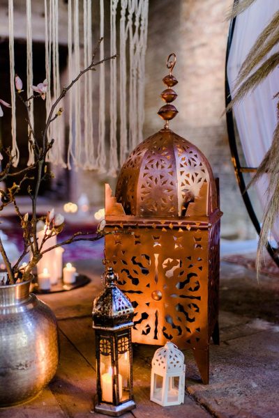 Le style marocain est une décoration dans laquelle certains objets sont omniprésents. Le tapis et les lanternes font partie des objets de déco dont vous ne pourrez pas vous passer pour un mariage oriental. Les tapis apportent une touche de couleur et de chaleur à votre décoration. Les lanternes créent une ambiance sophistiquée grâce à la lumière et aux motifs qu’elles créent. Vous pourrez alors utiliser ces objets déco pour la décoration de votre lieu de réception. Ou encore pour votre lieu de cérémonie, mais également pour un coin photobooth exotique.