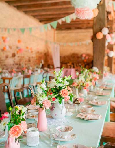Le mieux du mieux pour réussir votre ambiance déco vintage, c’est d’avoir un lieu de réception qui colle parfaitement au thème. L’avantage de ce dernier, c’est que le rétro offre de nombreuses possibilités ! Un château, un parc, une ferme, une ancienne maison… Beaucoup de lieux seront parfaits ! En fait, ce qu’il faut fuir à tout prix, ce sont les salles trop modernes, qui ne colleront pas du tout à l’ambiance rétro.
