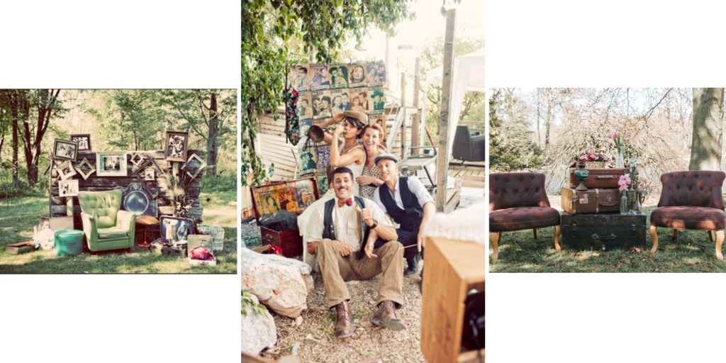Pour une déco vintage mariage digne de ce nom, il faut obligatoirement trouver des pièces vintage afin de construire un décor plus vrai que nature. Des vieux canapés, des bicyclettes, des chaises en bois, des malles, une machine à écrire, un vieux livre, ou n’importe quel autre bibelot d’époque seront parfaits pour une déco rétro.