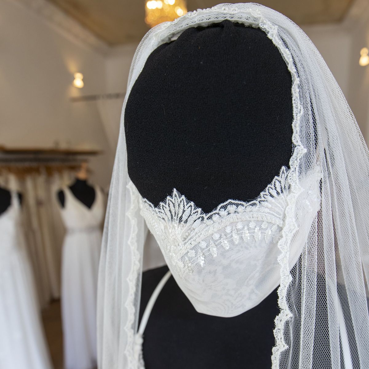 Pour répondre à cette nouvelle obligation sanitaire, de nombreuses marques se sont lancés dans la confection de masques sertis de pierres avec des matériaux délicats comme la dentelle par exemple. L’avantage de ces masques, c’est qu’ils deviennent un accessoire à part entière, et qu’ils peuvent être parfaitement assortis à votre robe de mariée, créant un style mariée romantique chic made in 2021.
