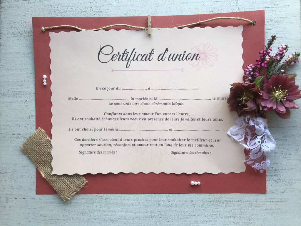 Tuto DIY modèle certificat mariage laïque