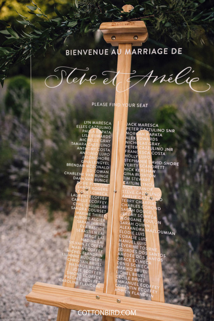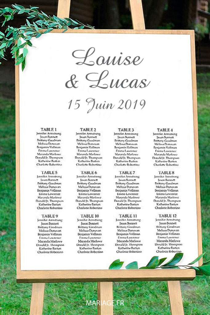 Un plan de table traditionnel… sur un chevalet