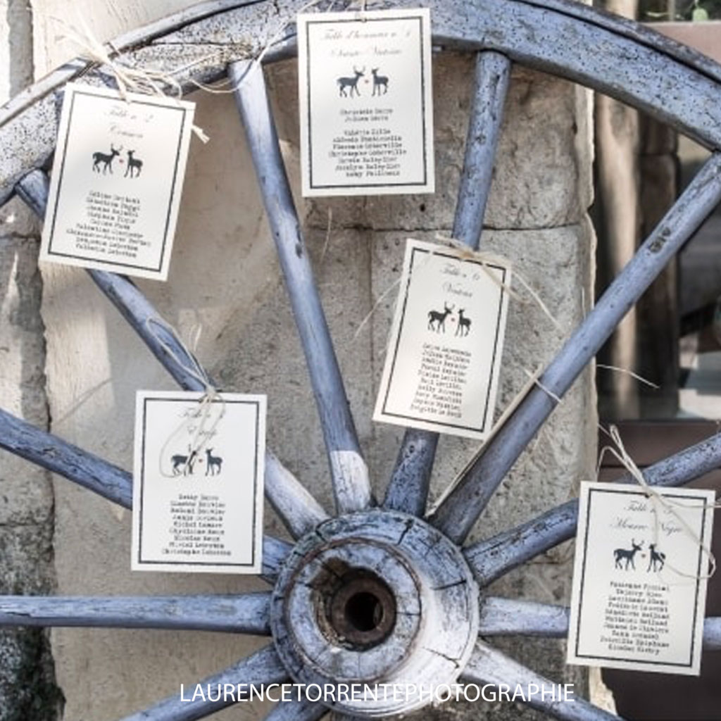 Au-delà du support que vous allez choisir (on vous en parle juste après, encore un peu de patience !!), vous devez accorder aussi du temps au choix de la papeterie où vous inscrirez les prénoms de vos proches. Privilégiez un papier qui reste cohérent avec le reste de votre décoration là aussi : chic, traditionnelle, glamour, champêtre… À vous de voir !