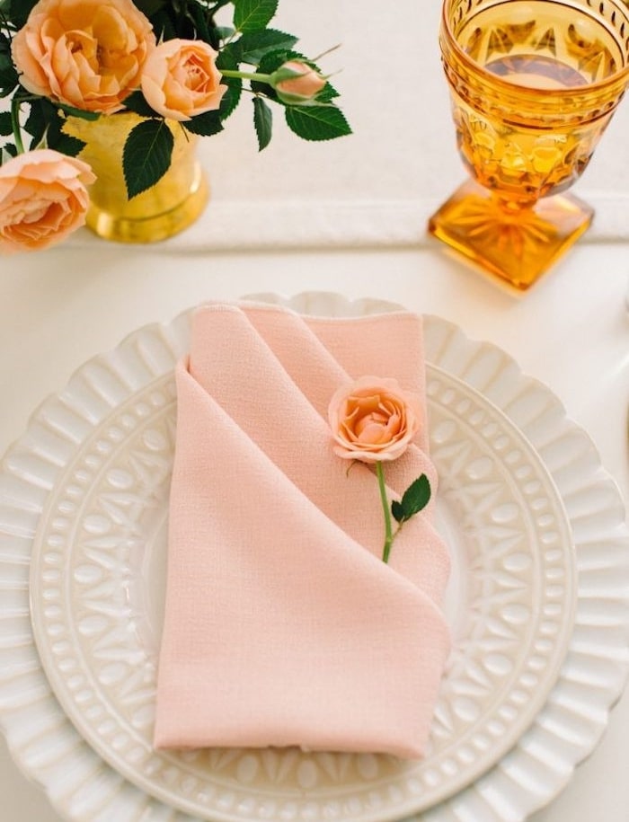 La serviette pliée à plusieurs fonctions… Elle peut être pratique (utilisé comme marque place ou bien pour ranger vos couverts) mais elle peut aussi impressionner vos invités si vous avez choisi une forme particulière. Votre serviette pliée devient alors un véritable objet déco qui amusera vos invités : ils essaieront forcément de le reproduire une fois déployée… Certains risquent même de ne pas oser déplier la serviette, charmée par son effet ! Depuis quelques années, le pliage de serviettes devient un véritable art décoratif qui séduit de plus en plus de futurs mariés !