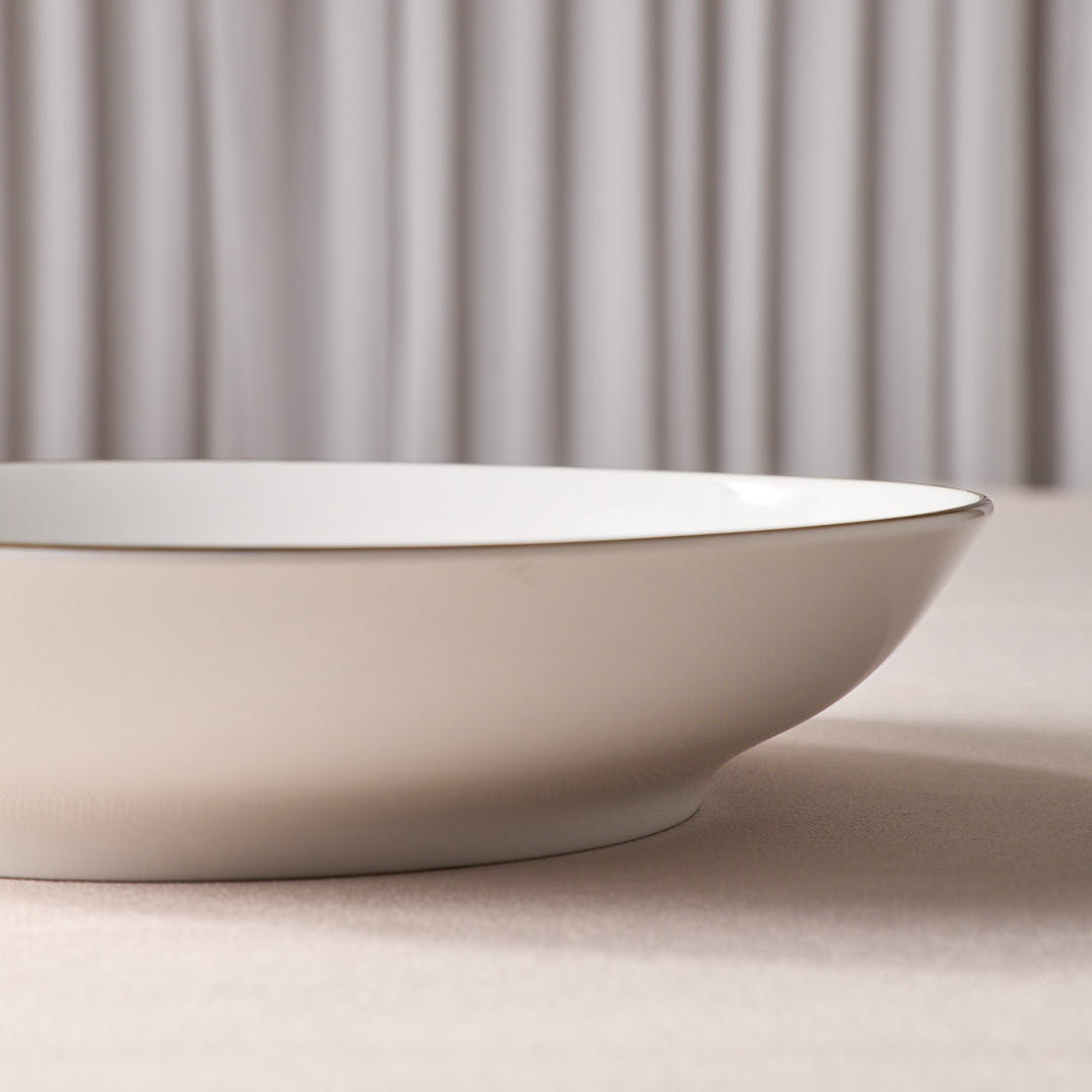 Parfaite pour les mets en sauce, les soupes ou les risottos, cette assiette creuse associe fonctionnalité et esthétisme pour une expérience culinaire chic et intemporelle.