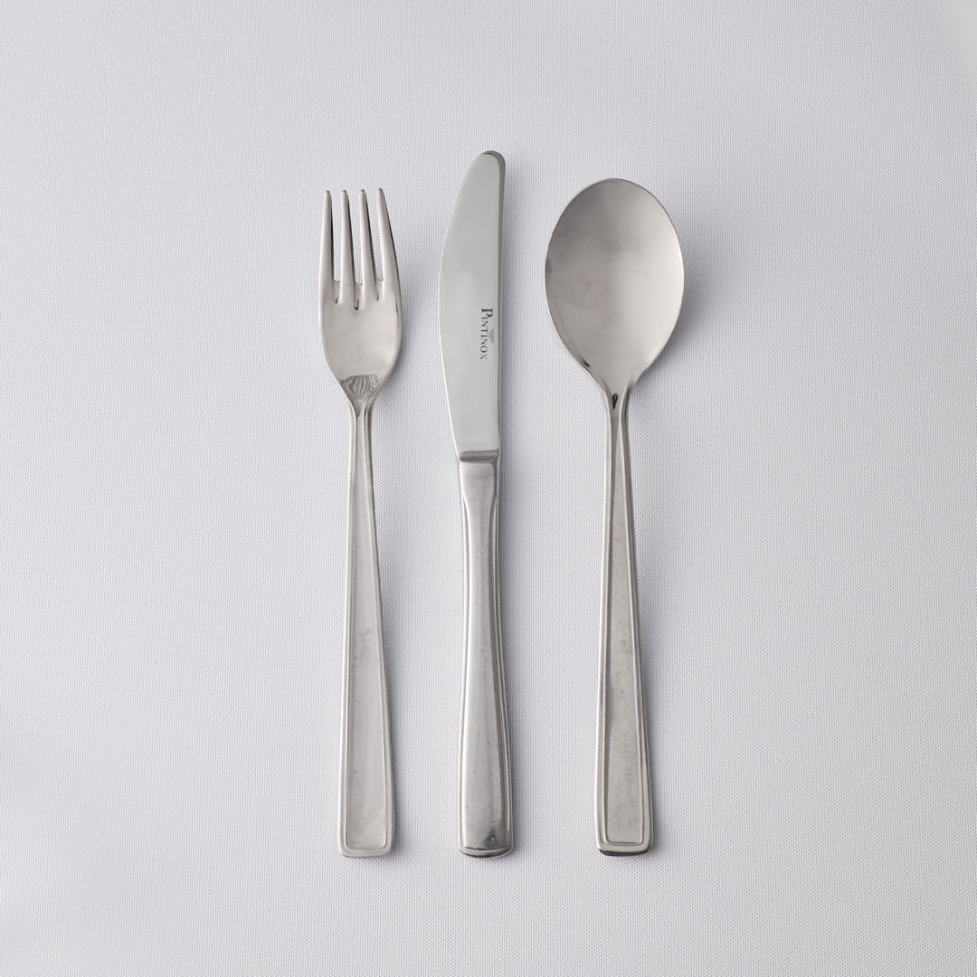 Découvrez les couverts «Élégance» : la gamme complète pour vos événements avec : fourchette, couteau, cuillère à soupe ; fourchette, cuillère et couteau entremets ; fourchette et couteau à poisson.
