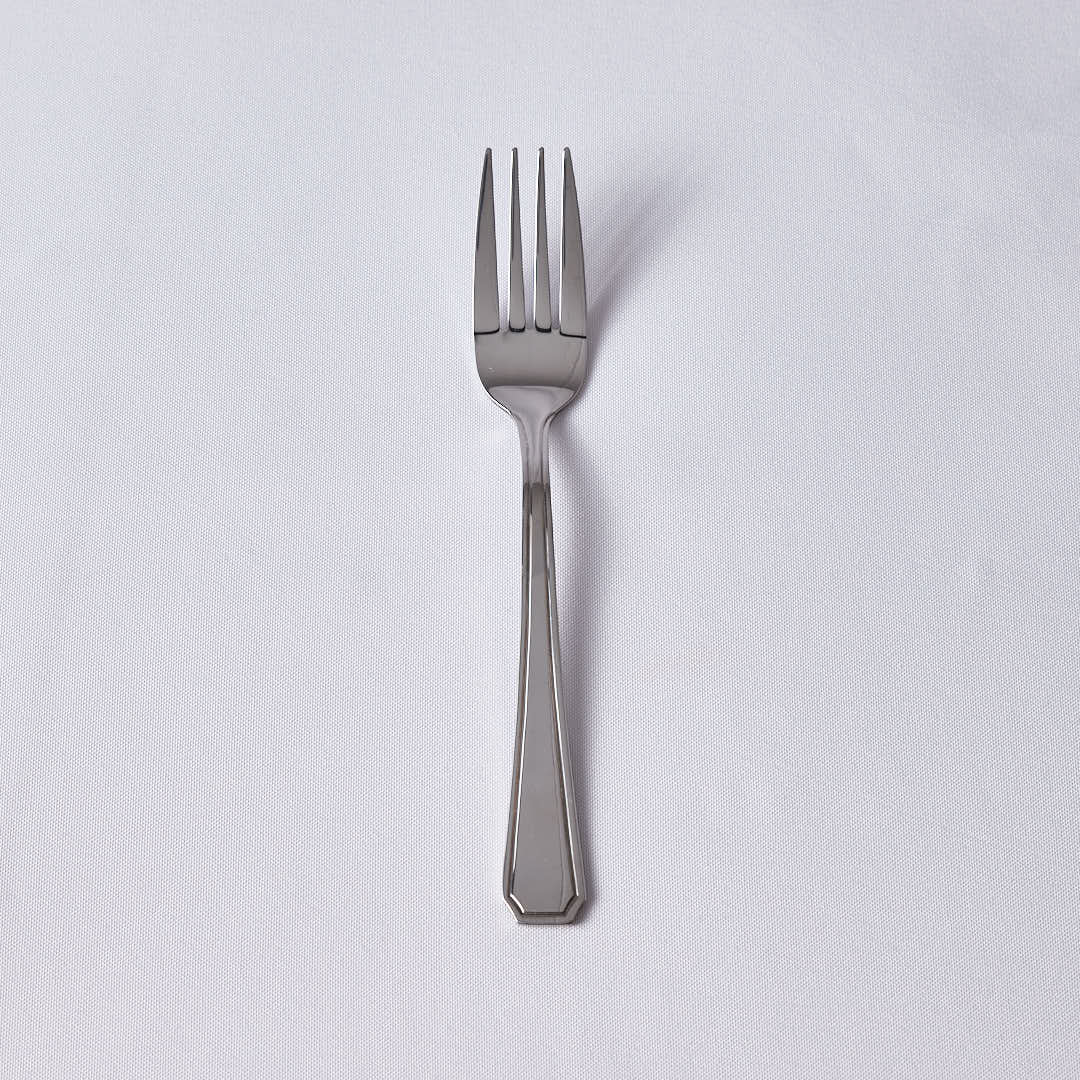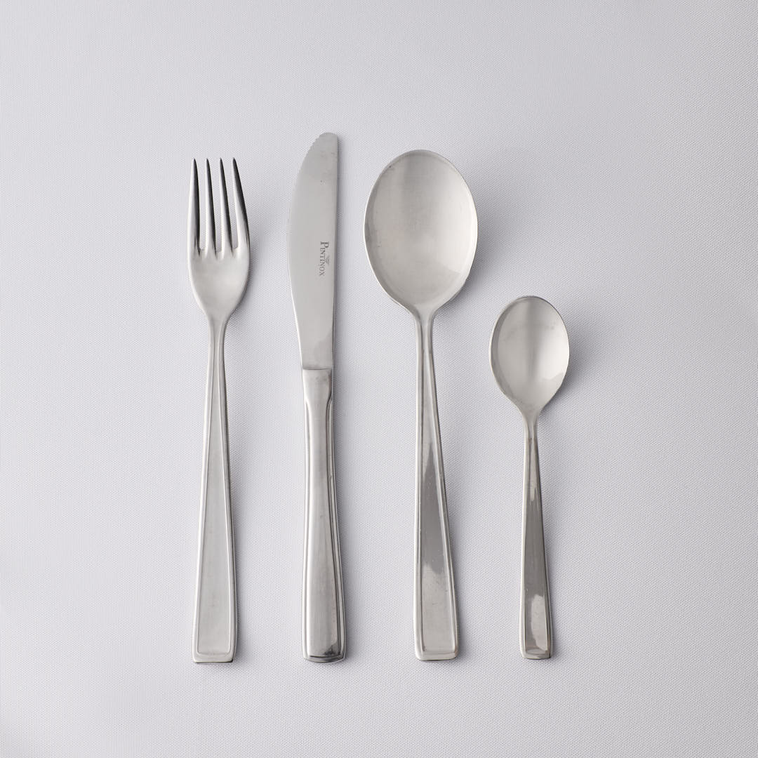 Découvrez les couverts «Élégance» : la gamme complète pour vos événements avec : fourchette, couteau, cuillère à soupe ; fourchette, cuillère et couteau entremets ; fourchette et couteau à poisson.