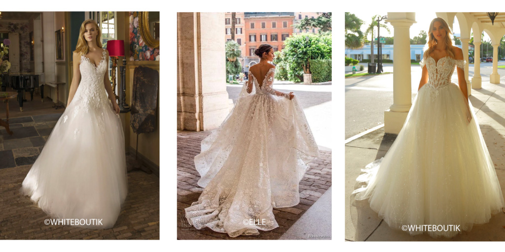 Idéale pour les morphologies en A, la robe de mariée princesse peut aussi s’adapter à toutes les silhouettes si le décolleté est réfléchi est adapté à votre poitrine.