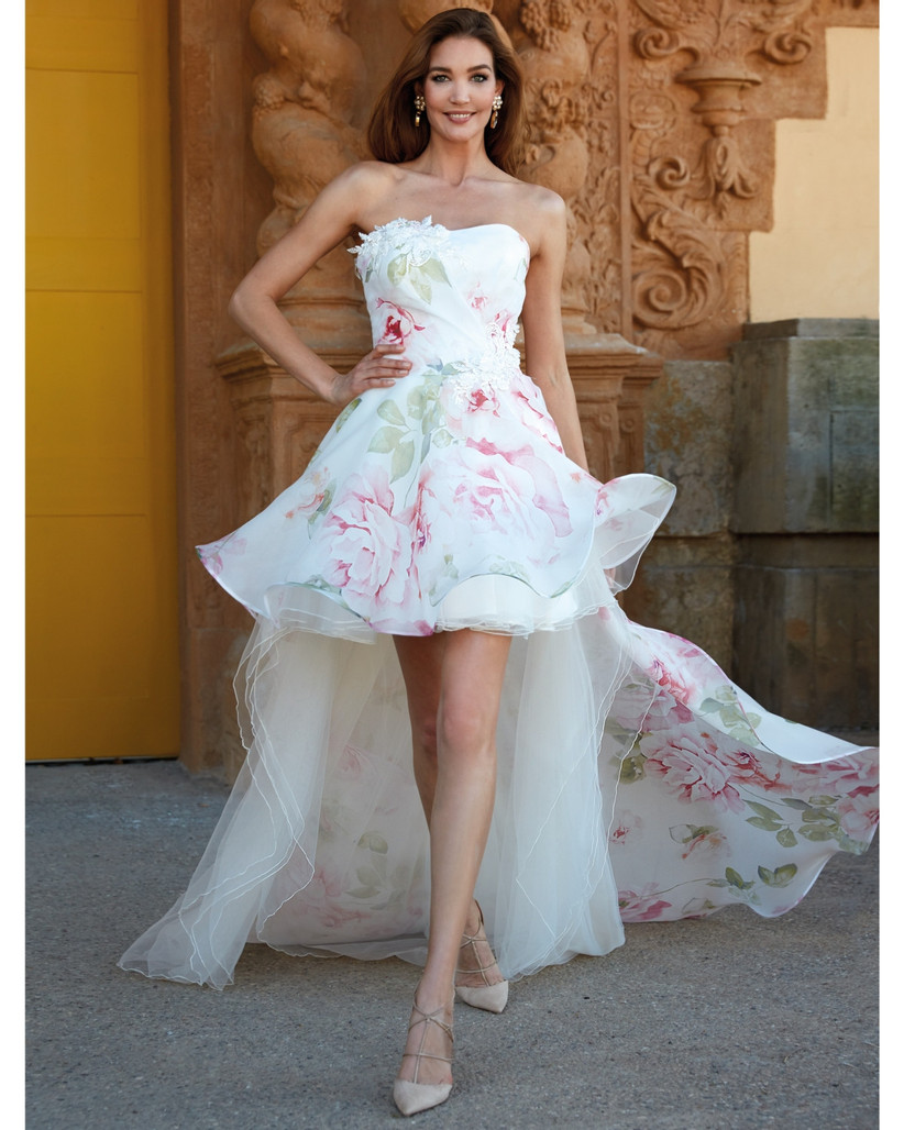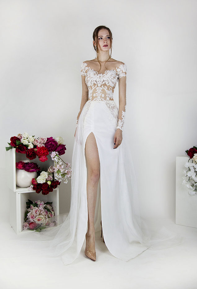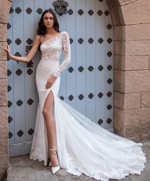 La tendance de l’asymétrique se retrouve déjà dans la mode… N’est-il pas alors logique de la retrouver aussi chez nos mariées ? La robe courte, la coupe fendue, ou déstructurée devient bien plus tendance que ce que l’on pourrait croire ! Le coup de coeur particulier ici ? La robe avec une seule manche : ULTRA tendance !