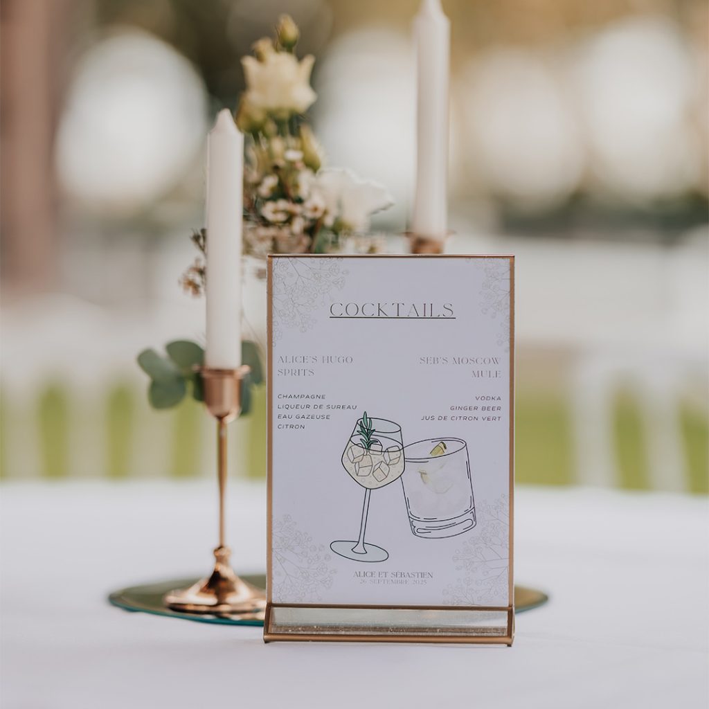 - Des marque-places assortis pour une touche personnalisée et chic.