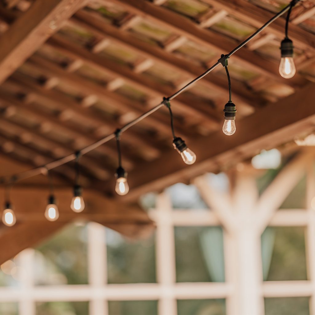Grâce à sa grande portée, elle permet de structurer de vastes espaces en quelques instants. Elle peut être suspendue en hauteur pour créer un plafond lumineux, installée en enfilade pour guider les invités ou encore drapée autour d’arbres et de structures pour sublimer un espace extérieur. Son design raffiné et ses ampoules au style rétro ajoutent du caractère et du cachet à l’ensemble de votre mise en scène.