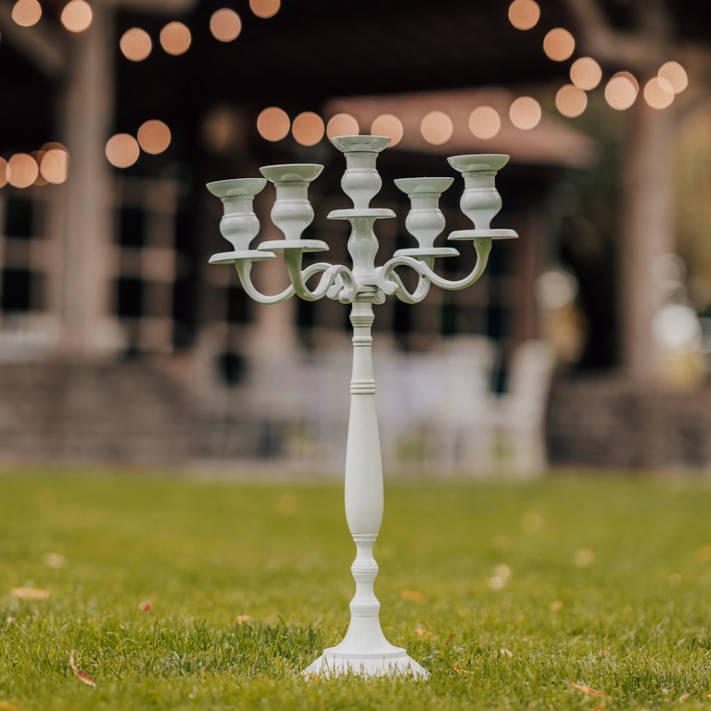Majestueux et intemporel, ce chandelier blanc à cinq branches de 80 cm de hauteur apporte une touche d’élégance et de raffinement à toute décoration de mariage. Son design classique, sublimé par une finition blanche épurée, en fait un élément parfait pour une ambiance romantique et sophistiquée.