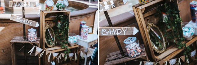 Les palettes et les cagettes en bois deviendront alors vos meilleures amies. Sans trop de bricolage, vos tables et décors seront faciles à fabriquer ! Ainsi que de jolis candy bars pourront alors voir le jour, grâce à un simple assemblage de cagettes en bois. On peut même utiliser des vieilles bouteilles en verre pour confectionner un jeu, comme celui des anneaux. Découvrez tout cela dans notre sélection de photos.
